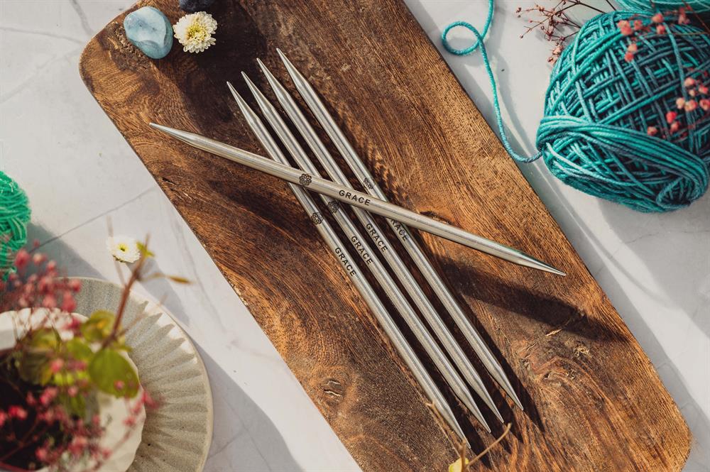 Nadelspiel 15 cm aus Edelstahl mit Prägung inspirierender Worte (englisch)Eine wunderschöne Kollektion aus Edelstahl-Nadeln mit Lacespitzen, neuartiken 360° Swivel-Seilen, hochwertigen Sets und exklusivem Zubehör. Alle Nadeln sind mit einem Wort der Achtsamkeit beschriftet und die Nadel-Sets, Taschen, Accessoires mit einem Mandala-Motiv verziert.