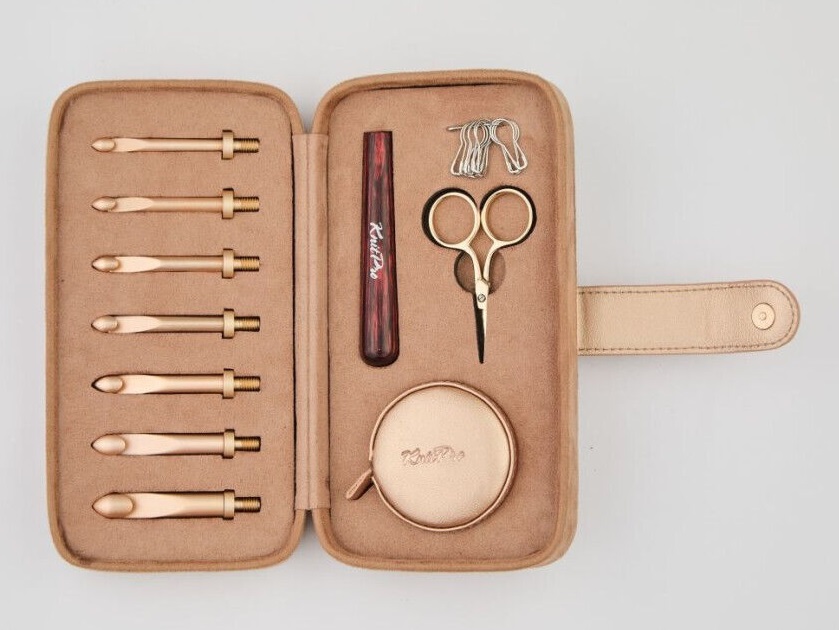 Zubehör: 1 Schere roségold, 10 verschliessbare Metall-Maschenmarkierer, 1 Massband in rosé-gold