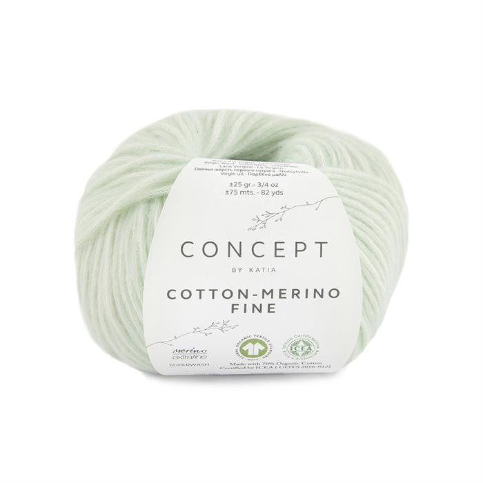 acquaCotton Merino Fine ist die kleine Schwester der beliebten Cotton Merino. Katia Concept hat hier mit der selben Technologie (ein Baumwollschlauch, in welchen feine Merinofasern eingeblasen werden) ein feineres Garn entwickelt, welches sich wunderbar für Baby und feinere Kreationen eignet.
