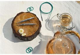 Die zur Serie Mindful passenden türkisfarbenen Rundstricknadel-Seile gibt es in den Längen 40cm, 50cm, 60cm, 80cm, 100cm, 120cm und 150cm, wahlweise mit einem nicht drehbaren oder 360° drehbaren Verbindungsstück (siehe unter Accessoires).